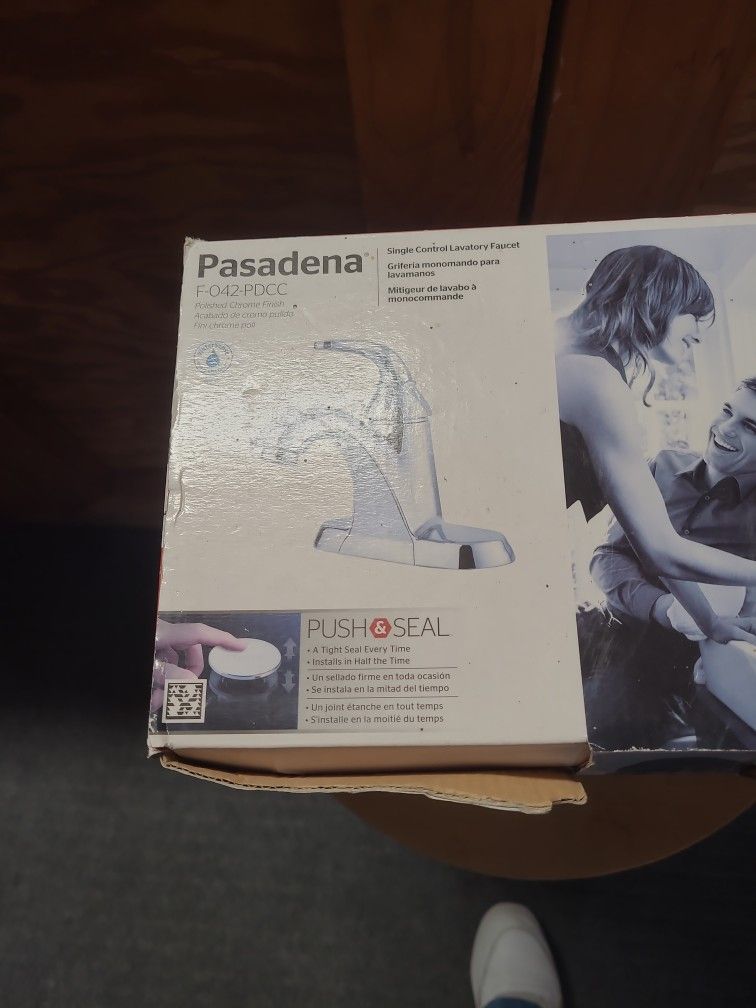 Never installed single control faucet from Pfister. Polished chrome finish. Still in original box!