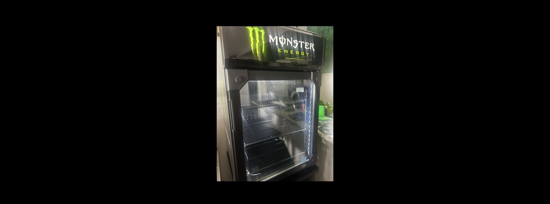 New Monster Energy commercial display fridge with matching stand – rare setup and in excellent condition. Originally stored for a couple of years, recently unboxed due to box wear and tested to ensure everything works perfectly. Clean, and ready to go. Perfect for a home bar, garage, office, game room, or collector piece. Serious buyers only. Rare to find this setup in this condition with the stand included. Includes: • Fridge (Model G-6-CB234B) • Matching Monster Energy stand • Keys • Original manual Specs: • Brand: IDW / Monster Energy • Model: G-6-CB234B • Capacity: 3.69 cu ft • Commercial-grade glass door merchandiser Exterior (Fridge): 36.25” H × 21.5” D × 22.25” W Interior: 23” H × 13” D × 19” W Stand: 32” H × 22” D × 23” W • Max load per shelf: 55 lbs Features: • Double-pane low-E glass door • Bright LED interior lighting • Forced-air cooling (chills fast) • ENERGY STAR rated • Designed for commercial beverage display