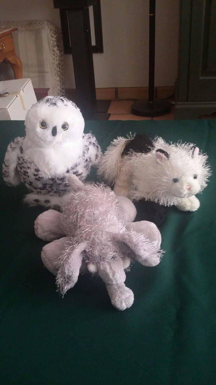 Lot of 3 Snowy Owl (retired) Elephant, and a Cat. All for 10.00. Check out my other offers, I have over 100. Thank You.