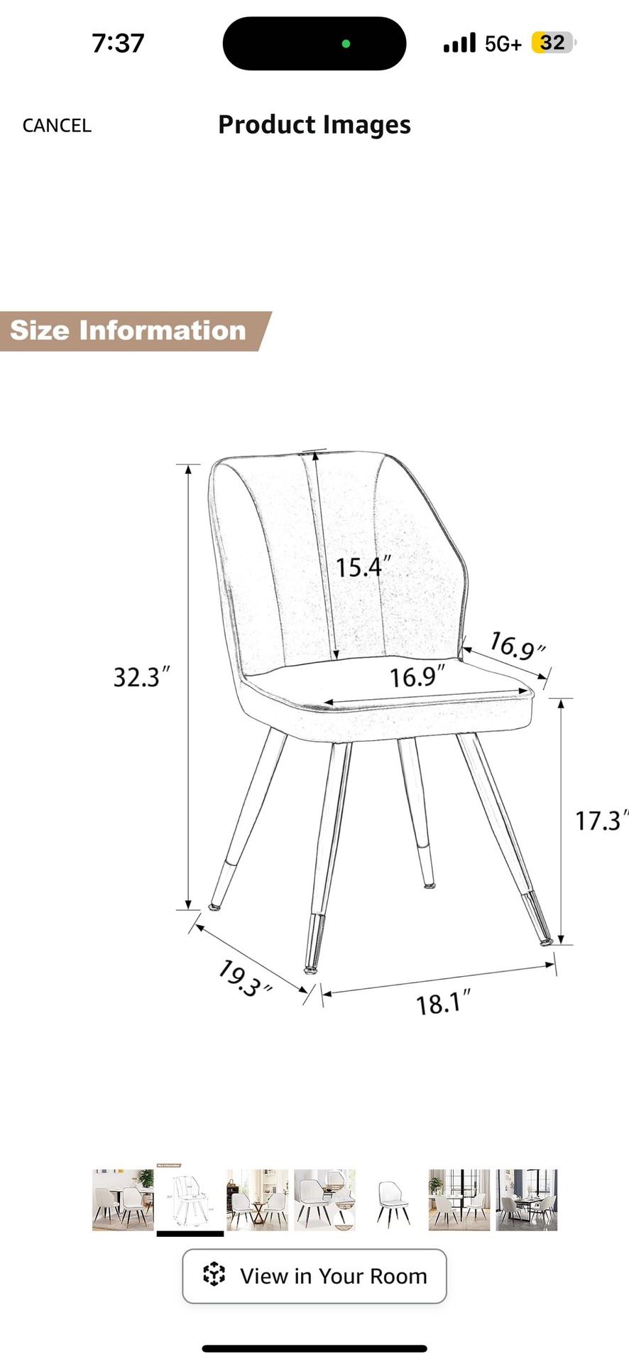 Faux Leather Dining Chairs Set of 6 Modern Upholstered White Kitchen Dining Room Chairs Armless Accent Side Chairs with Metal Legs