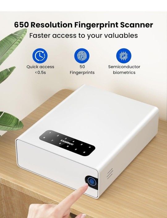 EAMIRUO Small Hand gn Safe for Pist Unlock with Fingerprint/Keypad/Key/App, Slide-Away G Lock Box Biometric Pistl Safe for Nightstand Bedside (White) $80