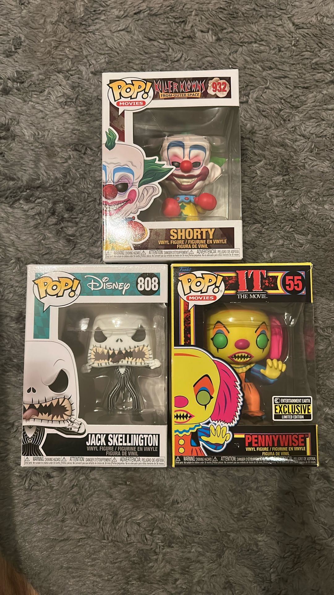 Funko Pops on sale. • Jack Skellington- $22 • Pennywise- $35 • Shorty- $33