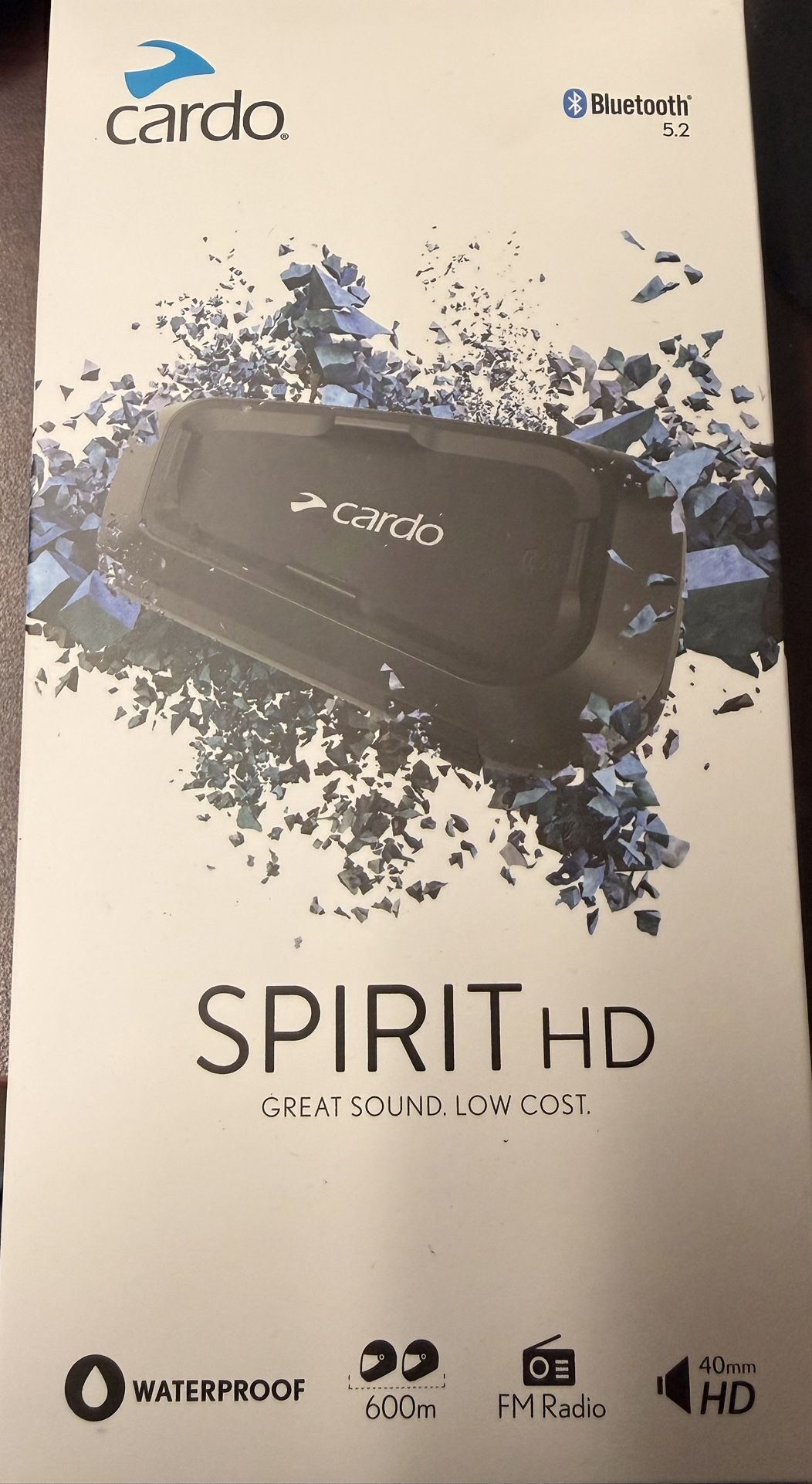 Cardo Systems Spirit HD Motorcycle Bluetooth Communication Headset, 2-Way Bluetooth, Thin 40mm Speakers, Waterproof, Universal Connectivity - Single Pack