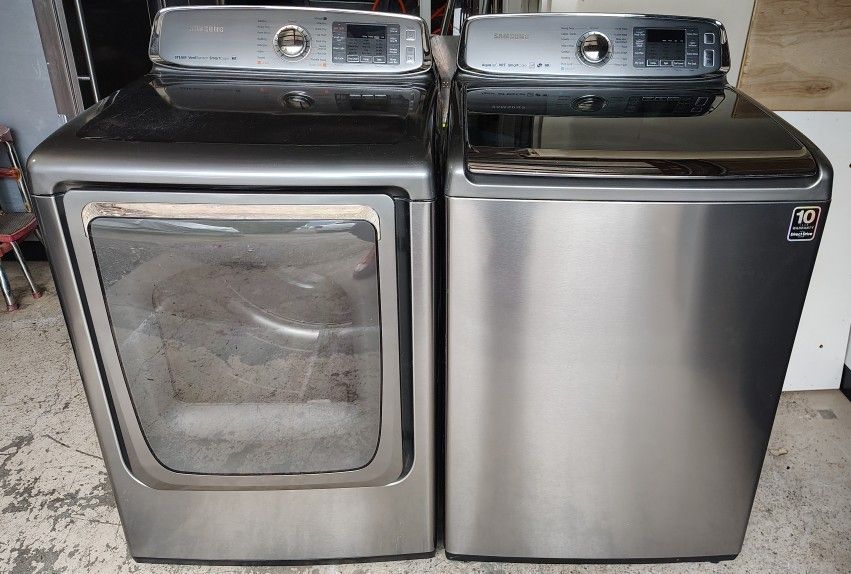 Excellent working & clean grey Samsung washing machine and electric clothes dryer with tons of options and settings in sliding steam drying. I can bring them to you for no extra charge.