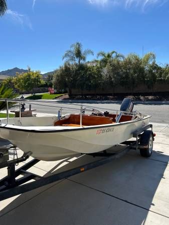 17 foot 1984 Boston Whaler. 90 hp 2 stroke Yamaha. Older engine but runs strong. All mahogany recently redone. Looks great! 27 gallon custom fuel tank under the seat. Running lights and anchor light work. Deck lighting. Garmin depth finder/GPS. Compass. New Eclipse radio. Bait tank (not sure if the pump works). Trailer lights work. New tires. Electric winch. It’s been a great boat!