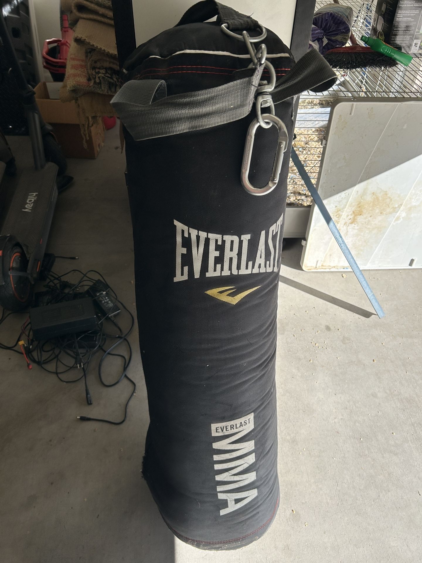 This Everlasting heavy bag lives up to it’s name. It sure is heavy. In all seriousness, this is great for cardio. Has the chain for hanging and I put a heavy duty caribeaner (not sure how that’s spelled) on the chain for hanging. It does have a smallish tear along the seam toward the bottom, but I imagine that could be fixed easily.
