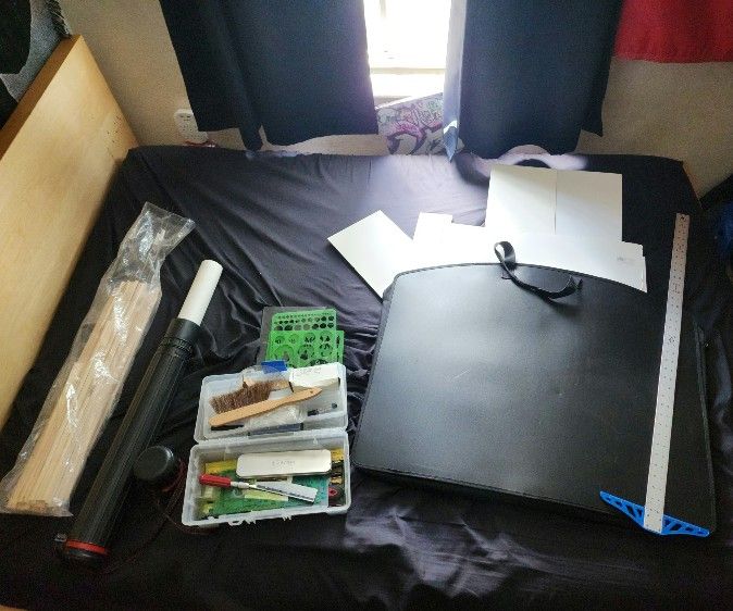 I was a architecture student in Valencia but I have switched majors. This is EVERTHING you need to get you going for your first year or so of architecture classes Items include -Profolio holder 32" wide -A bag of various sizes of bass wood and metal wires -Water color paper of different sizes -36" t square -box full of pencil, marker, water color, oils, erase, clay, stencil, ruler, miter saw, charcoal sticks -Plexiglass and other building materials -Sketch roll with protective case