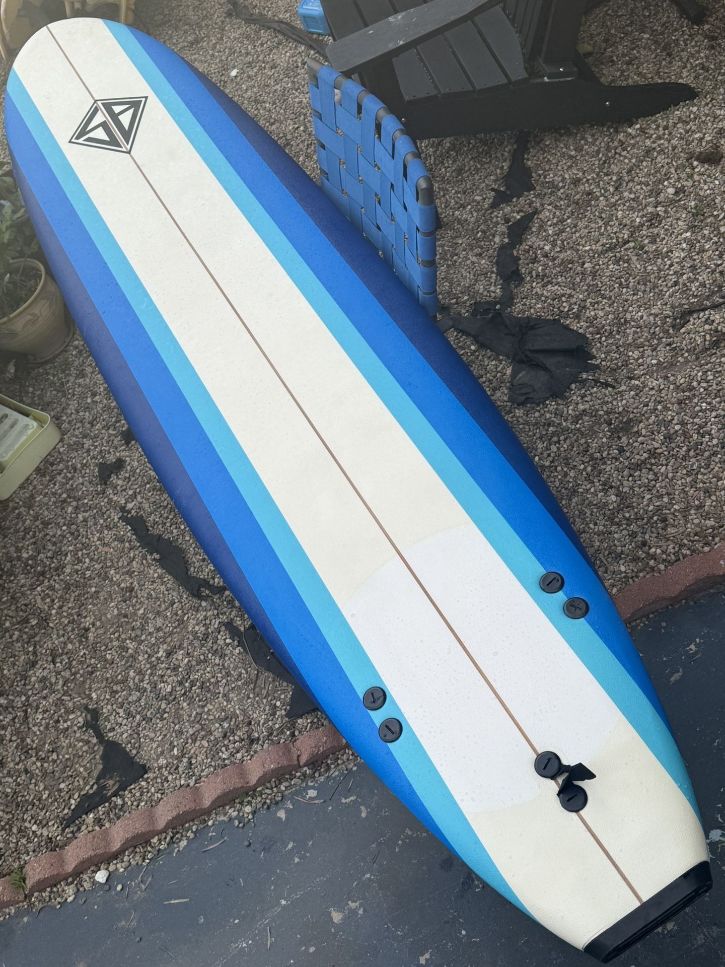 Comes with fins. $20 extra for a leash if you need it. With its foam core, thick sturdy rails, and its length at 8 feet, the size and construction of the Scott Burke Soft Surfboard make catching waves a breeze and provide extra stability for beginners, who are still learning to balance and stand up for the first time and the soft foam deck will even cushion the fall for those first timers a whole lot better than a fiberglass board! Don’t write it off as just a beginner board though, because both beginners and advanced riders all love the long smooth rides with minimal paddling effort that can be achieved with a foam deck longboard even when the waves are small! The 8’ Scott Burke has an EPS foam core with 3 laminated wood stringers for a structured yet flexible, lightweight core and an XPE/IXPE deck skin that provides a texture that’s easier to grip to than a fiberglass board. Dimensions: 96” x 22” x 3” Weight: 13.5 lbs. Weight Capacity: Up to 200 lbs. Construction: Lightweight EPS Foam Core w/ Triple Stringer System Hull Design: HD Polyethylene Slick Hard Bottom w/ IXPE/XPE Deck Skin