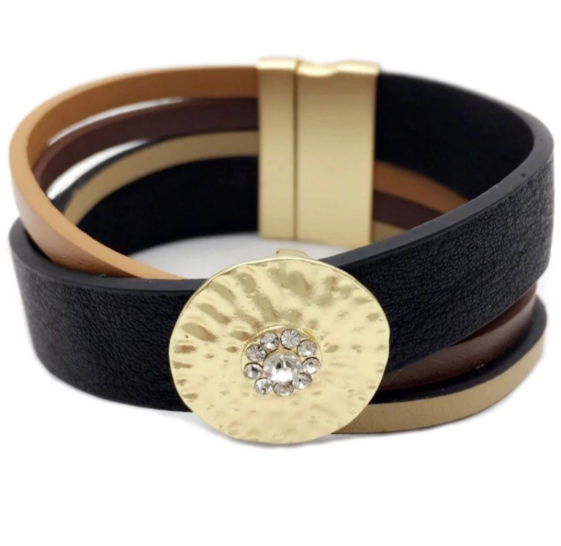Super cute black and brown Leatherette bracelet/ this will be your daily fav / it has a magnetic closure