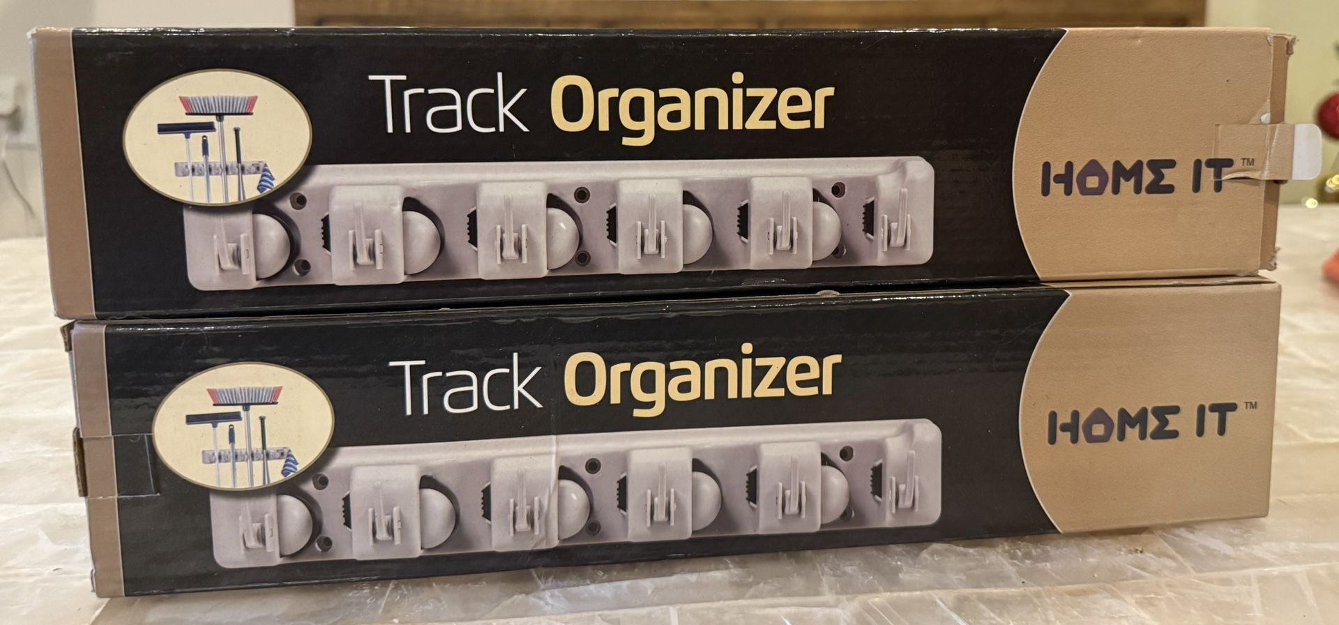 Home it mop and broom wall mount organizer. It features 5 slots and 6 hooks to hold various household tools