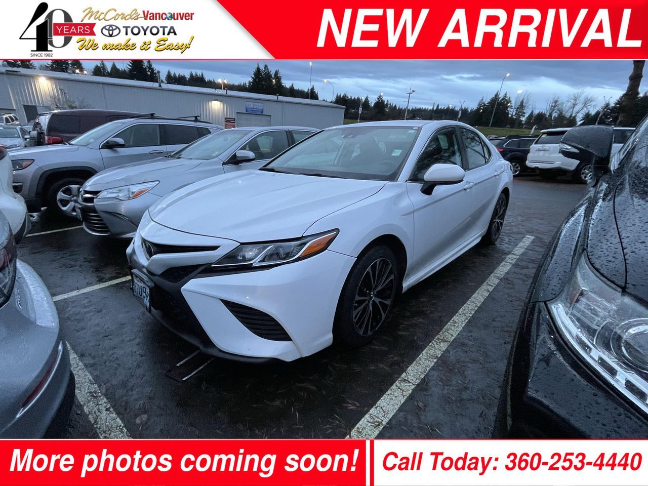 EPA 39 MPG Hwy/28 MPG City! SE trim, Super White exterior and BLACK interior. Lane Keeping Assist, WiFi Hotspot, Smart Device Integration, iPod/MP3 Input, Back-Up Camera, Alloy Wheels, Onboard Communications System. CLICK NOW!KEY FEATURES INCLUDEBack-Up Camera, iPod/MP3 Input, Onboard Communications System, Aluminum Wheels, Smart Device Integration, WiFi Hotspot, Lane Keeping Assist. Rear Spoiler, MP3 Player, Remote Trunk Release, Keyless Entry, Steering Wheel Controls. Toyota SE with Super White exterior and BLACK interior features a 4 Cylinder Engine with 203 HP at 6600 RPM*.EXPERTS CONCLUDEEdmunds.com explains On the highway, the Camry is comfortable and compliant. The Camrys big, comfortable seats, smooth ride and powerful climate control mean a pleasant experience for passengers of most sizes.. Great Gas Mileage: 39 MPG Hwy.OUR PROMISEMcCords Vancouver Toyota-Scion is a family owned and operated dealership since 1982. Our promise is to provide our customers with the best possible reconditioned used car on the market. We will run every used vehicle we offer for sale against the NHTSA (National Highway Traffic Safety Administration) recall data base and will address any recall before we sell it to you. Every used car is run through a 160 point quality control inspection- We pay our mechanics to find any issues so you dont have to. We offer a 5 day 500 mile No Questions Asked money back guarantee, a 12mo/12k mile limited powertrain warranty on any vehicle that is 14 years or newer and has less than 125k miles. The warranty allows you to fix the vehicle at any shop that you choose- not just us. Plus our Certified Toyota program that gives you 1yr/12k mile comprehensive warranty coverage and 7yr/100k mile powertrain coverage.MCCORDS VALUE PRICEWe research our market and Value price every vehicle we offer for sale with a very competitive price. Less time negotiating and more time finding the vehicle that best matches your wants and needs. We look forward to your visit.Pricing analysis performed on 12/13/2025. Horsepower calculations based on trim engine configuration. Fuel economy calculations based on original manufacturer data for trim engine configuration. Please confirm the accuracy of the included equipment by calling us prior to purchase.