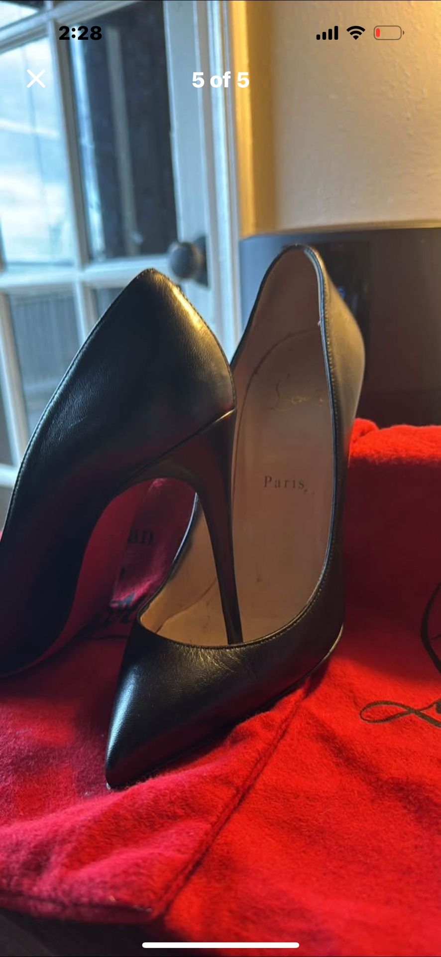Red bottoms louboutin size 38 which is a 7.5 or 8. I wear a 7 so they run small fits me well. Shoes come with cover they were a gift but they are to high valued 945.00 selling for half the price