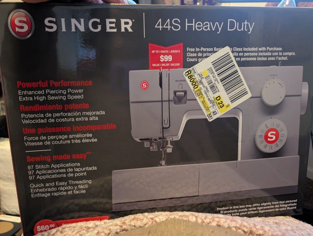 Heavy duty Singer Sewing machine Brand new in box with all items pictured and included Has manual, starting kit items, etc. The free beginner sewing class is still available for use also No longer needed