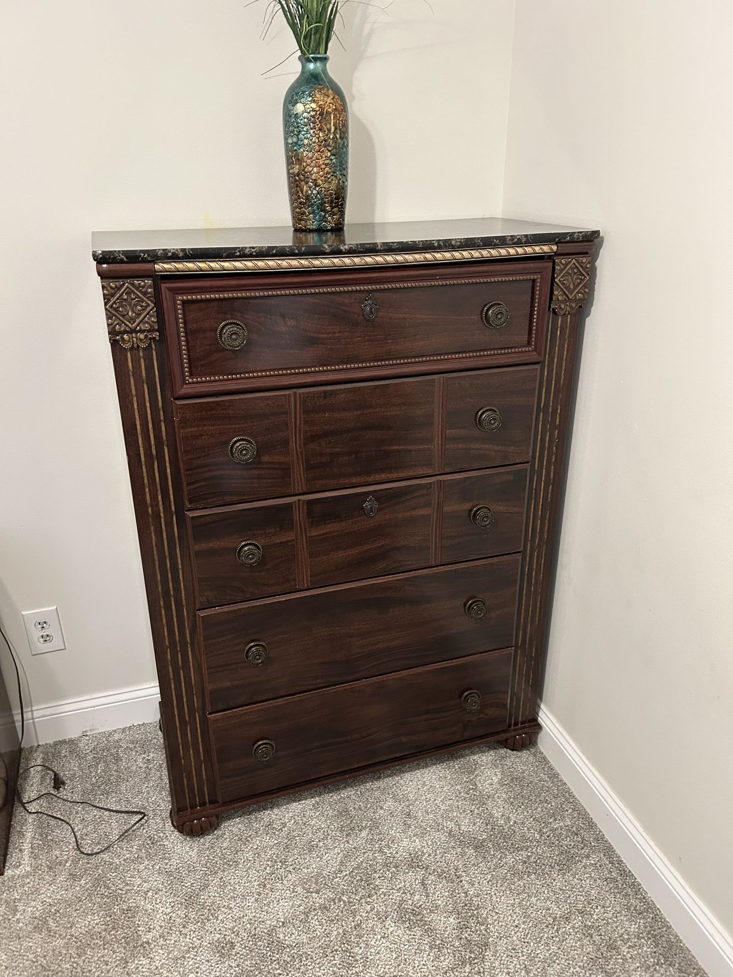 Laminate matble top dresser and nighstand from Ashley furniture store , smook free , clean good condition !