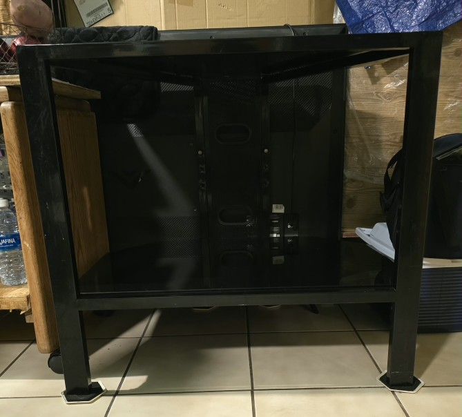 Lightly used tempered glass entertainment center. Has three levels but one is now shown.