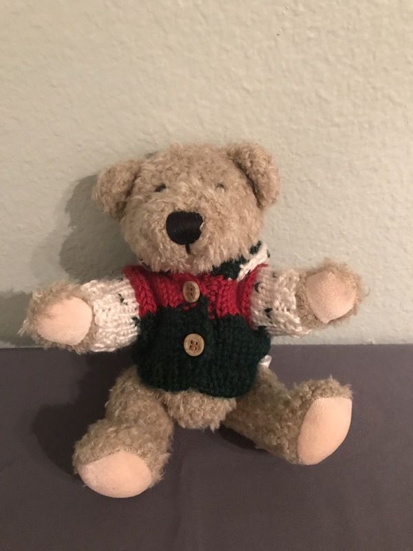 Stuffed teddy bear with moveable head, arms, and legs. Porch pickup.