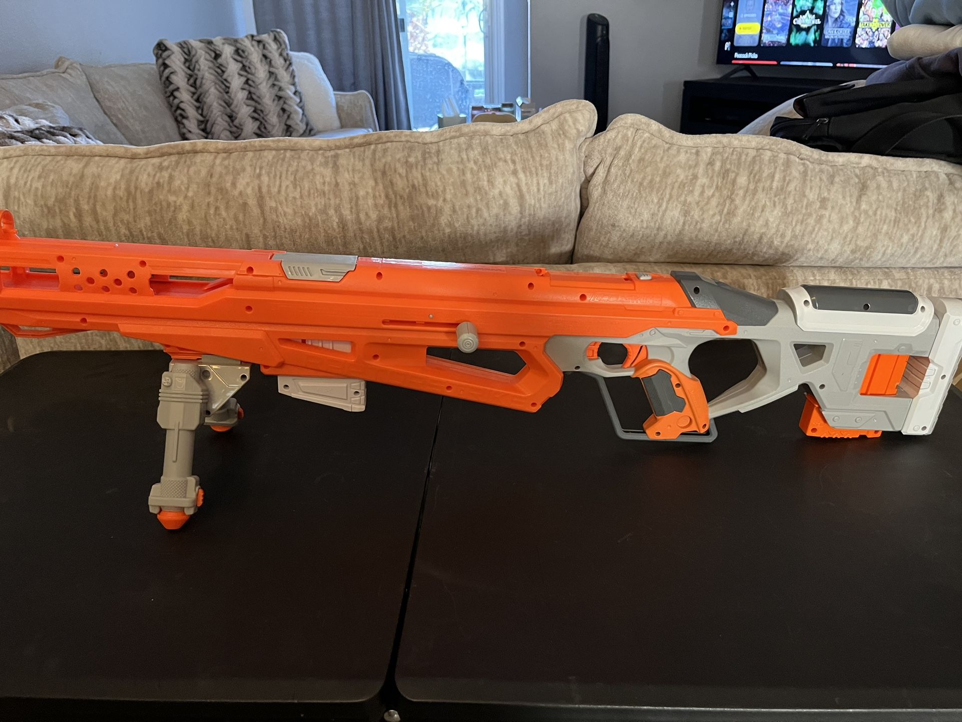 Bolt-action. Extendable bipod and pop-up sight designed for accuracy! The Nerf N-Strike Elite Raptor Strike blaster is part of the Acustica Series, which features darts designed for greater accuracy. Use the bipod to stabilize shots; the legs extend to adjust the height. The blaster has a pop-up sight for targeting. ** Sorry NO Delivery **