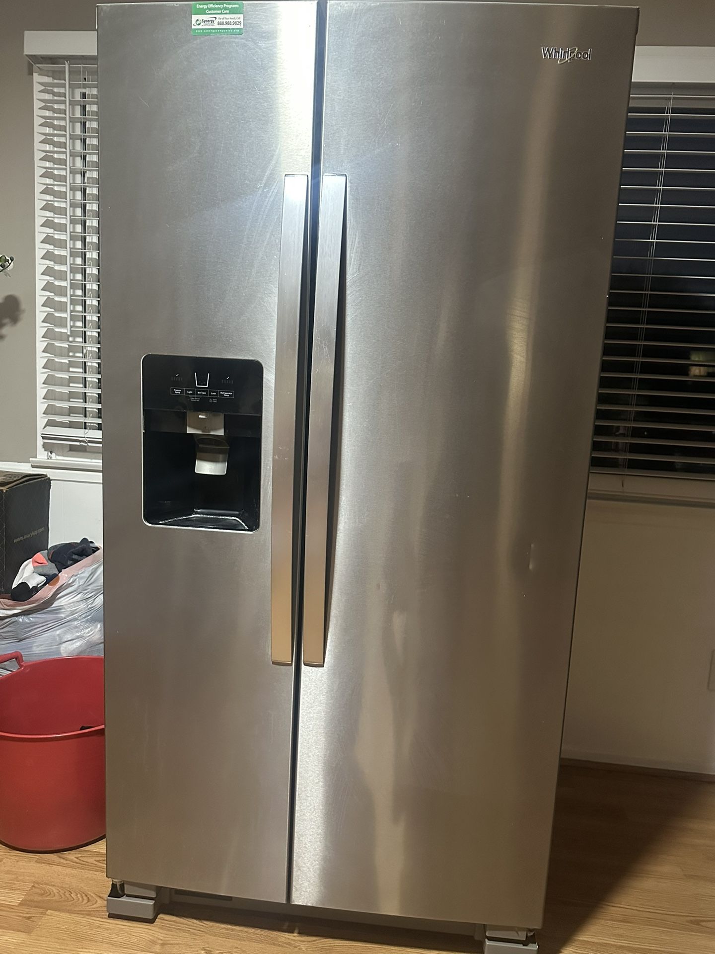 Refrigerator & freezer work has a ripped hose that leaks water and needs new lightbulbs.