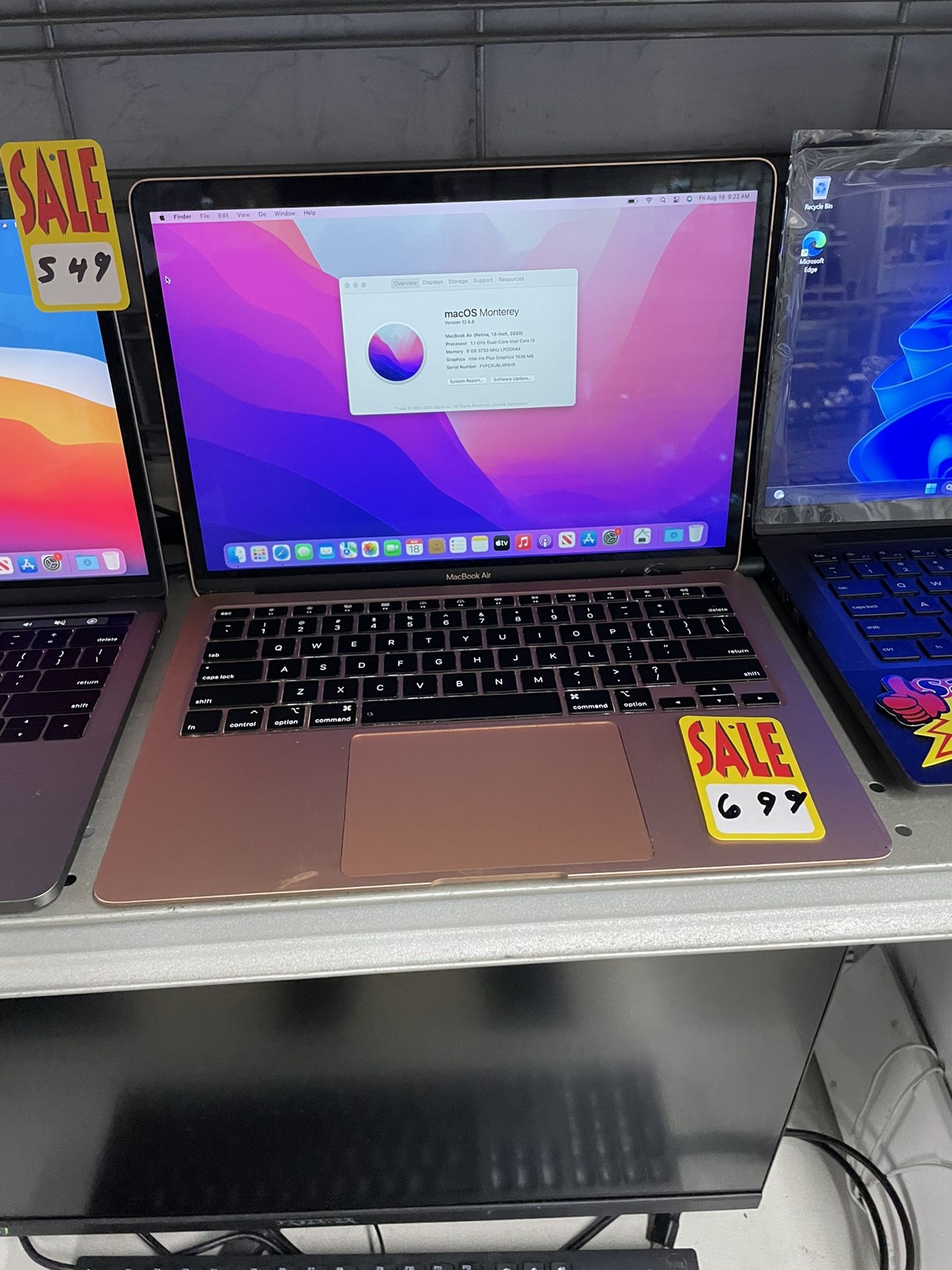 Apple MacBook Air Yrs. 2020 13” i3 8gb Memory 256gb HHD ROSE GOLD
