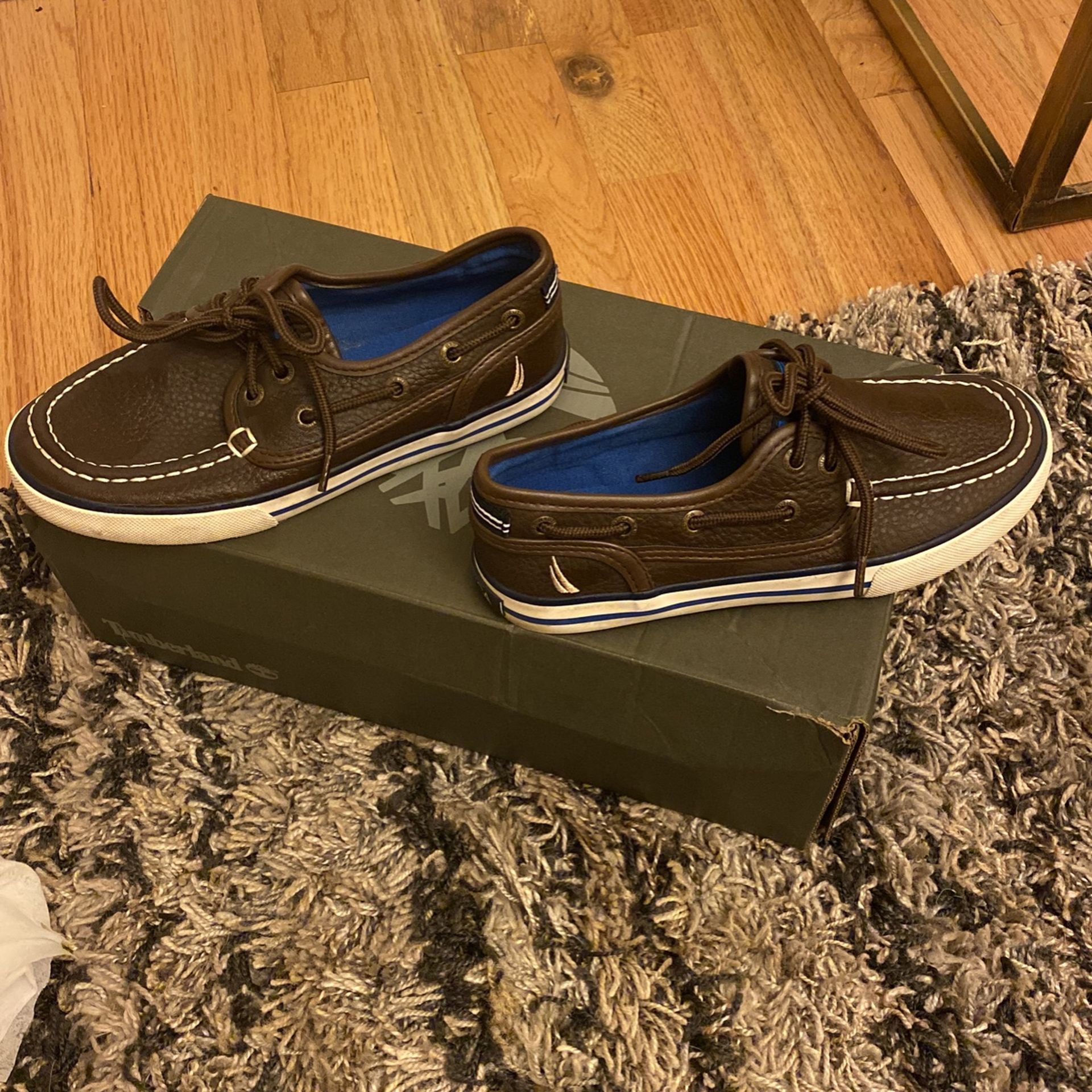 Kids Nautica boat/casual shoes -Very good condition-only worn a few times -siZe 13 kids -Brown w/navy blue