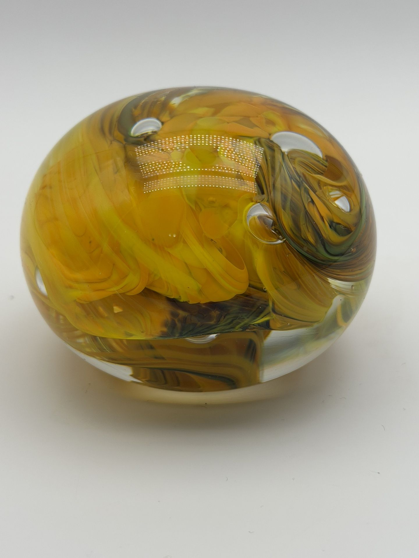 Murano Style Glass Paperweight Yellow Green Swirl