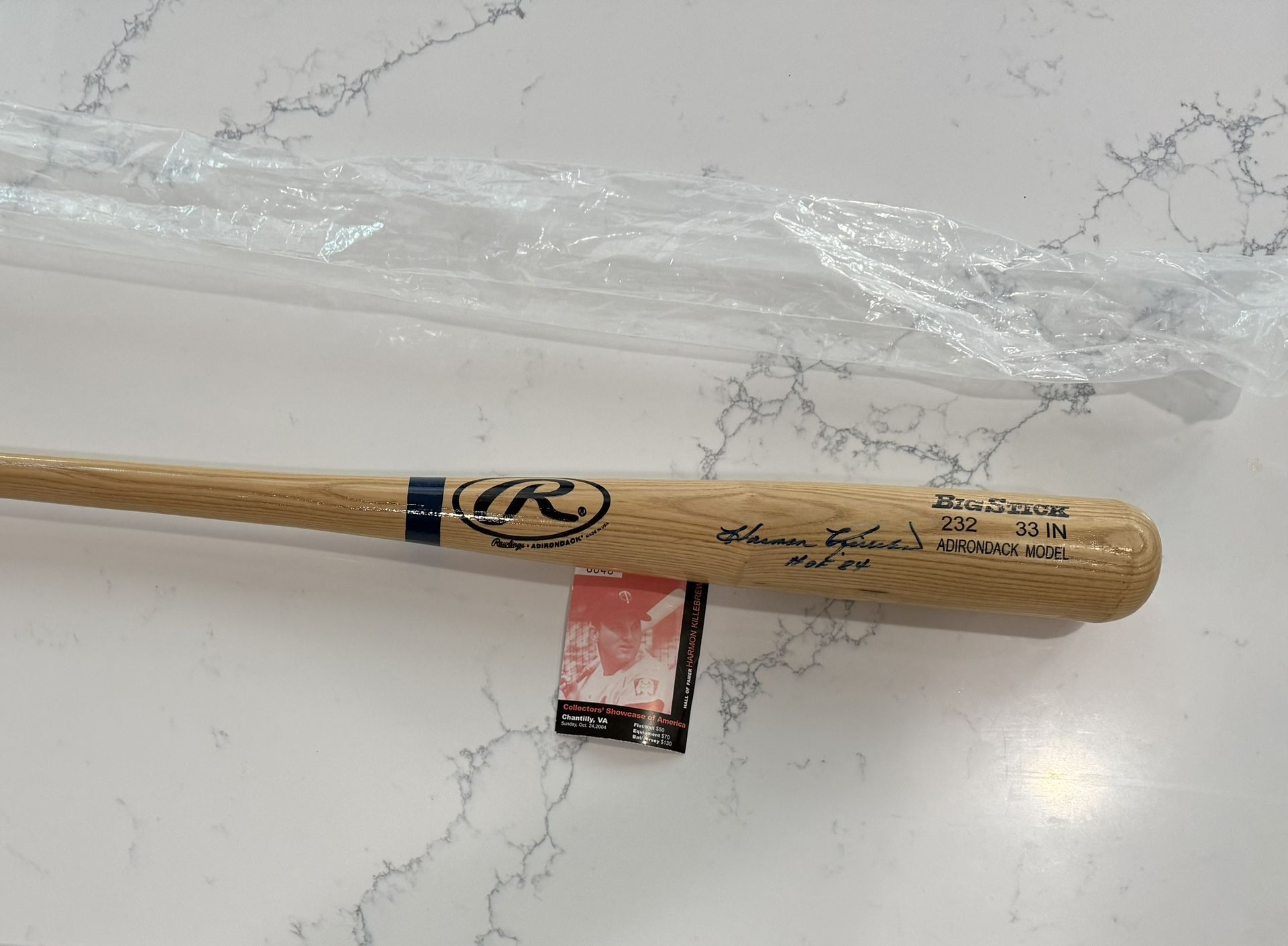 Harmon Killebrew signed baseball bat with autograph ticket from 2004 when the bat was signed.