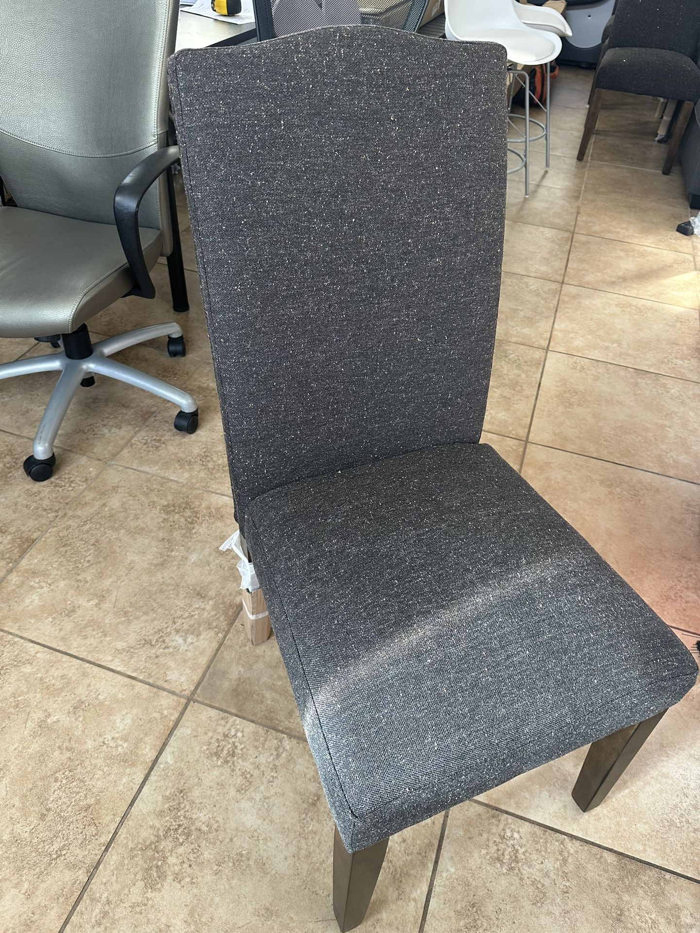 Brand new set /4 world market dining chairs. High back dark fabric with speckled color in it. Studded don the back. They are a little darker than pictured. Already put together. $350 OBO 18 high 20 wide and 20 deep