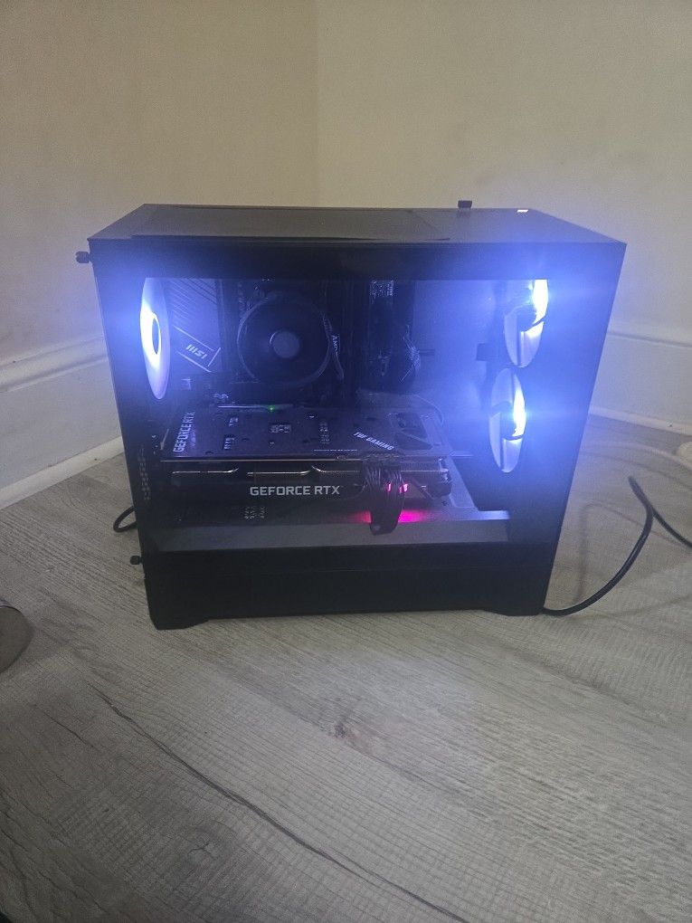 Really good condition. We built it in February and only used it a little bit. Really good computer. Runs really well on games like fortnite, siege, valorant, etc.