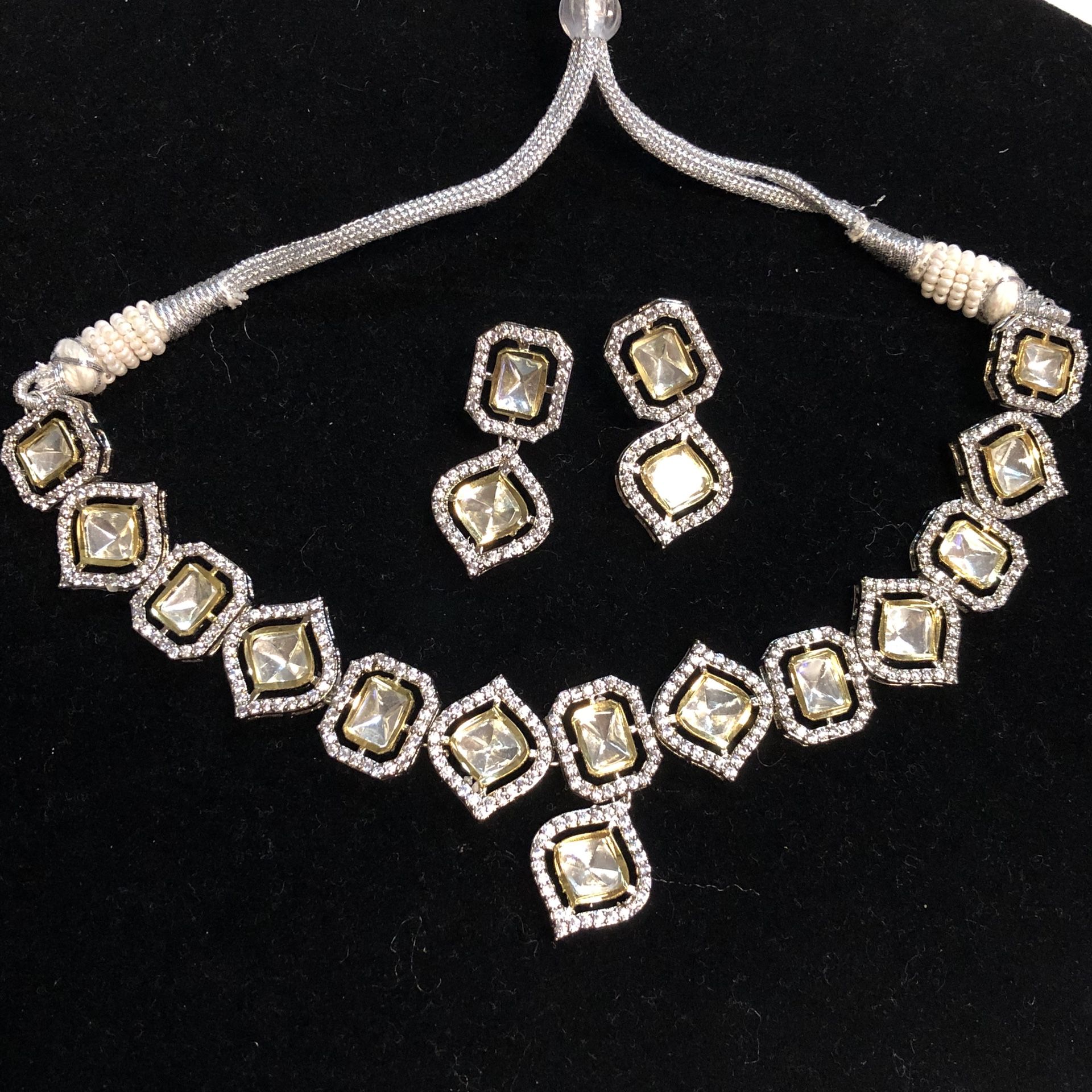 Uncut Kundan Premium Quality Indian Bollywood Jewelry Pakistani AD American Diamond Silver Foiling