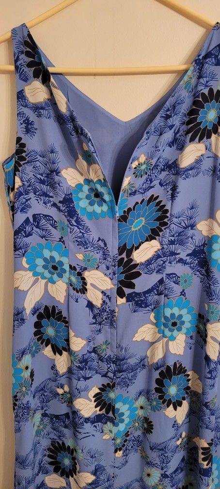 Maxi Dress White Blue Black and Gold. Size 8. Machine washable.
