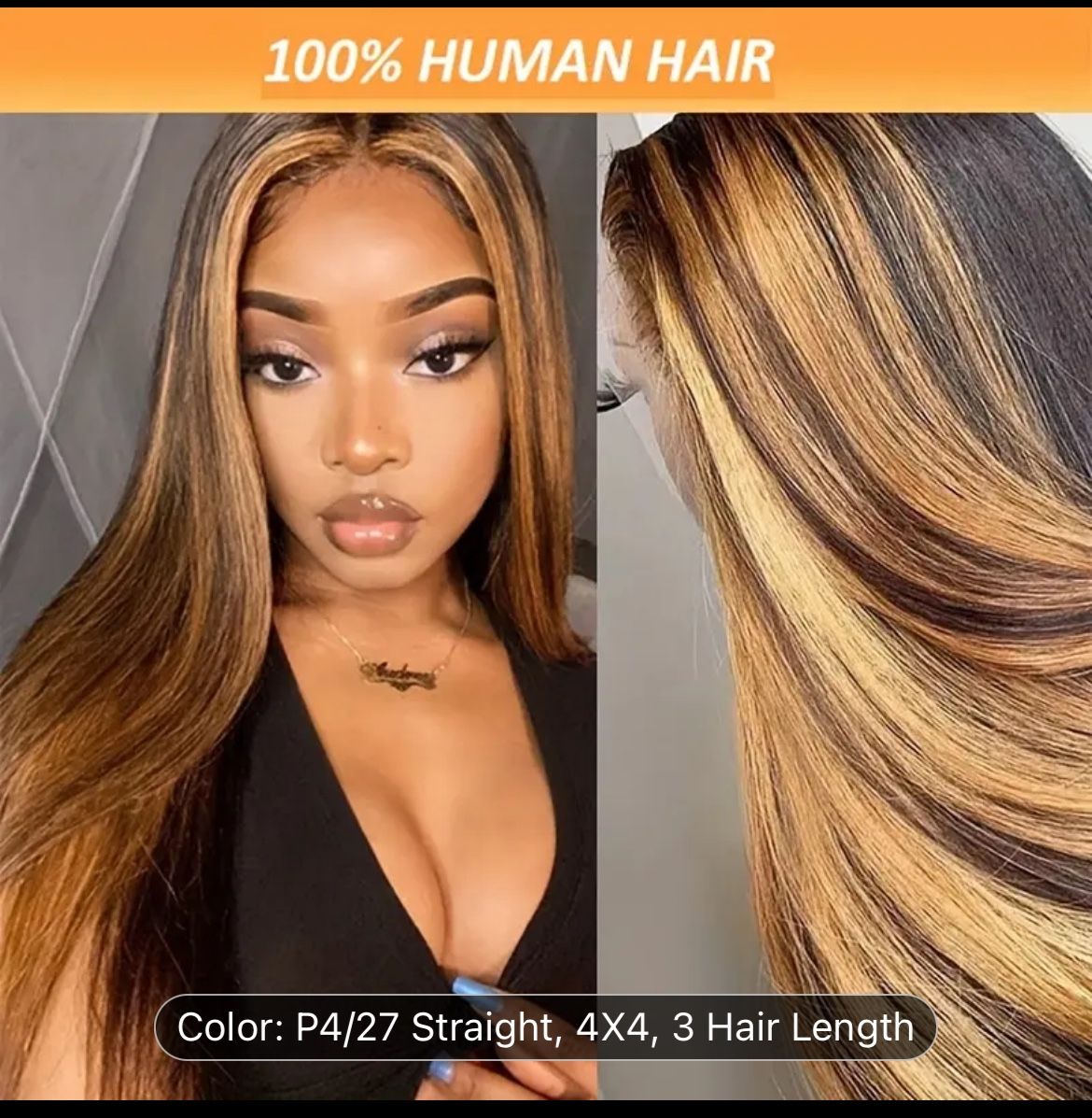 Totally New - Transparent Lace Front Wig - Brazilian Straight Human Hair 180% Density Pre-Plucked Natural Look Colored 20 Inches for Women, Elegant Style All Ethnicities, Fashion Accessory | Elegant Style Wig | Natural Human Hair