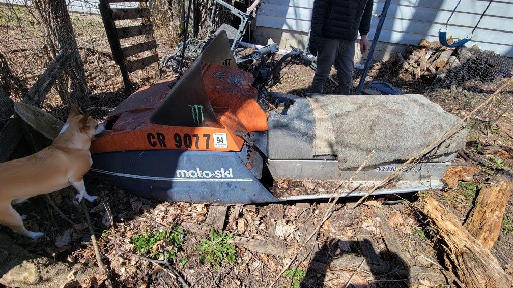 Has sat for 11 years. Motor was good but has no pull rope and some wires dangling. has no skis. It's in my back yard and you will need to get it out and haul away. Basically free scrap metal or parts. Please don't ask me if I know if this or that works, I don't know.