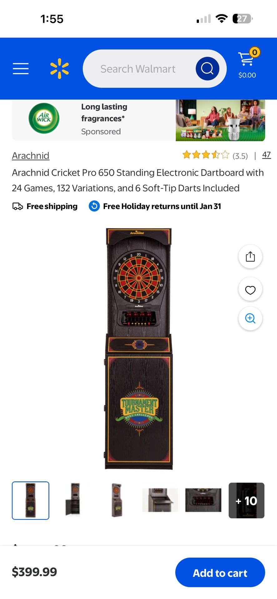 Brand new open box 📦 $300 OBO Arachnid Cricket Pro 650 Standing Electronic Dartboard with 24 Games, 132 Variations, and 6 Soft-Tip Darts Included