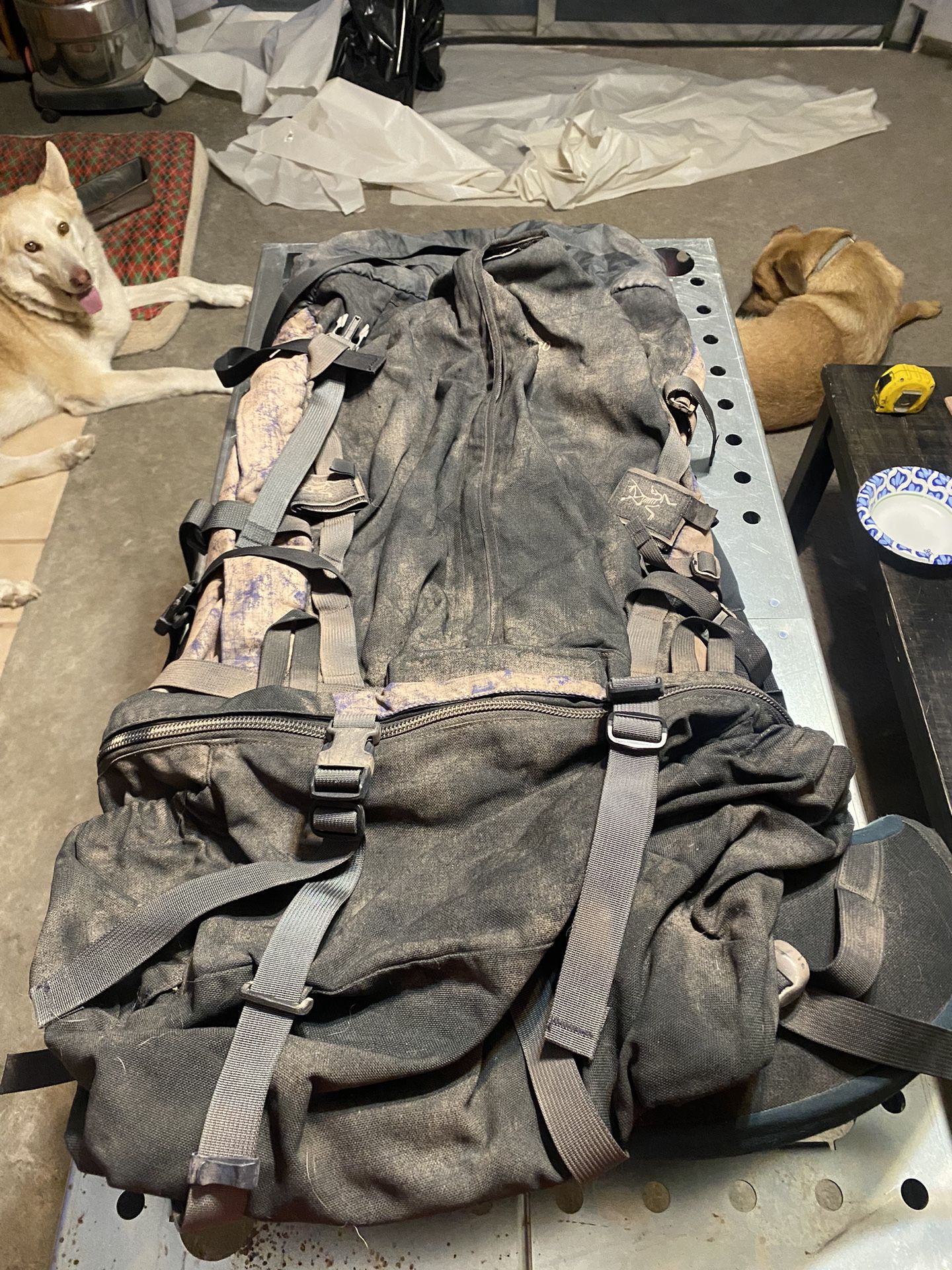 Bora 80 hiking/camping backpack has been used as wear and tear. No rips. All zippers work really isn’t great condition I just do not need no more. I bought a new one.