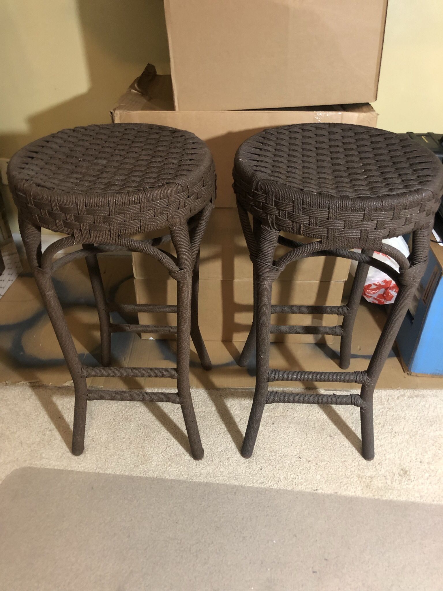 (2) WICKER BAR STOOLS FOR SALE. “ REDUCED” WAS $175 NOW $150 TEXT ONLY! NO SHIPPING! CASH SALE ONLY AT PICK-UP! NO DELIVERY SERIOUS INQUIRIES ONLY!