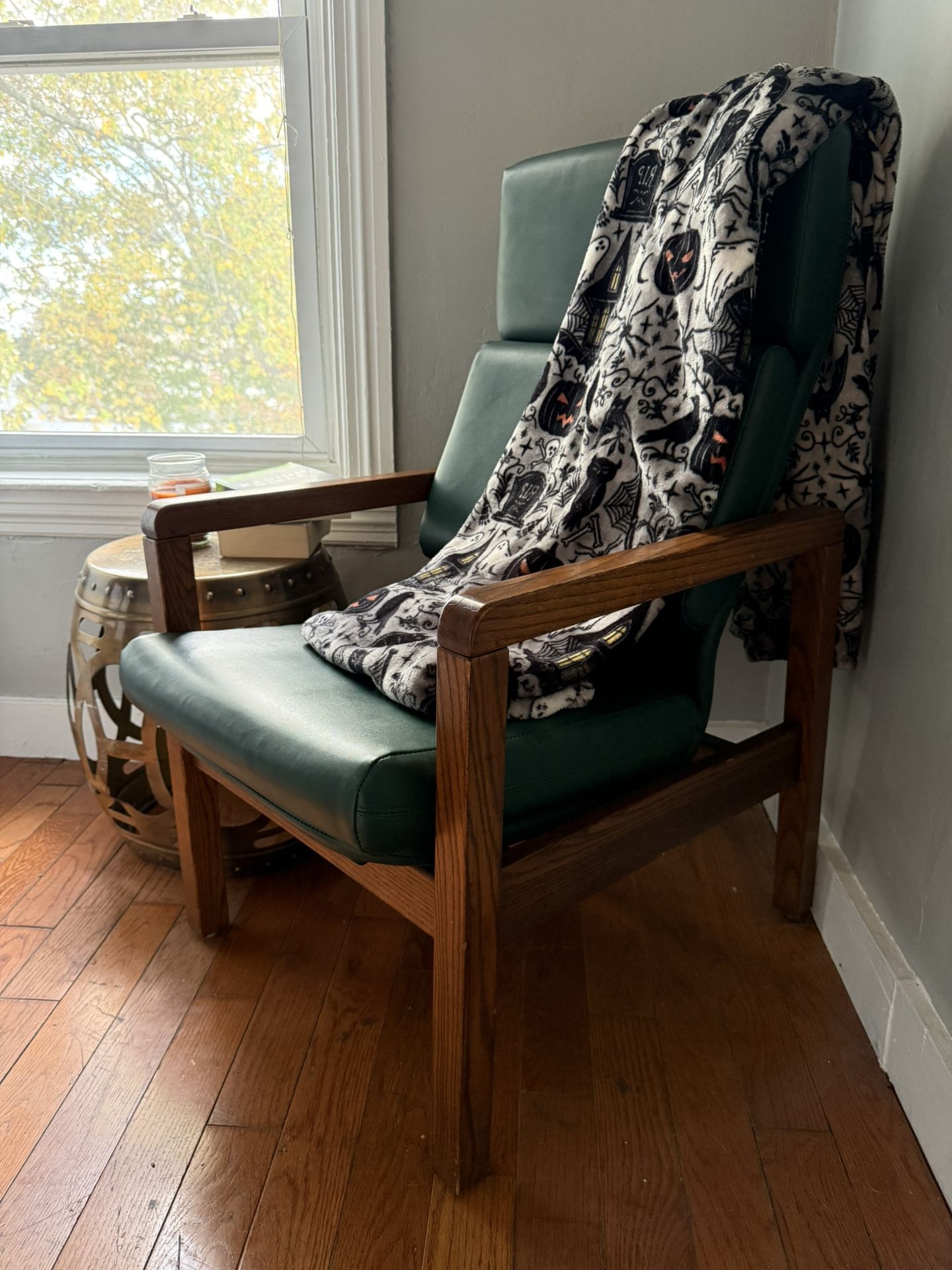 Super comfortable green retro 1950s chair. Slight rip in the back, but very sturdy.