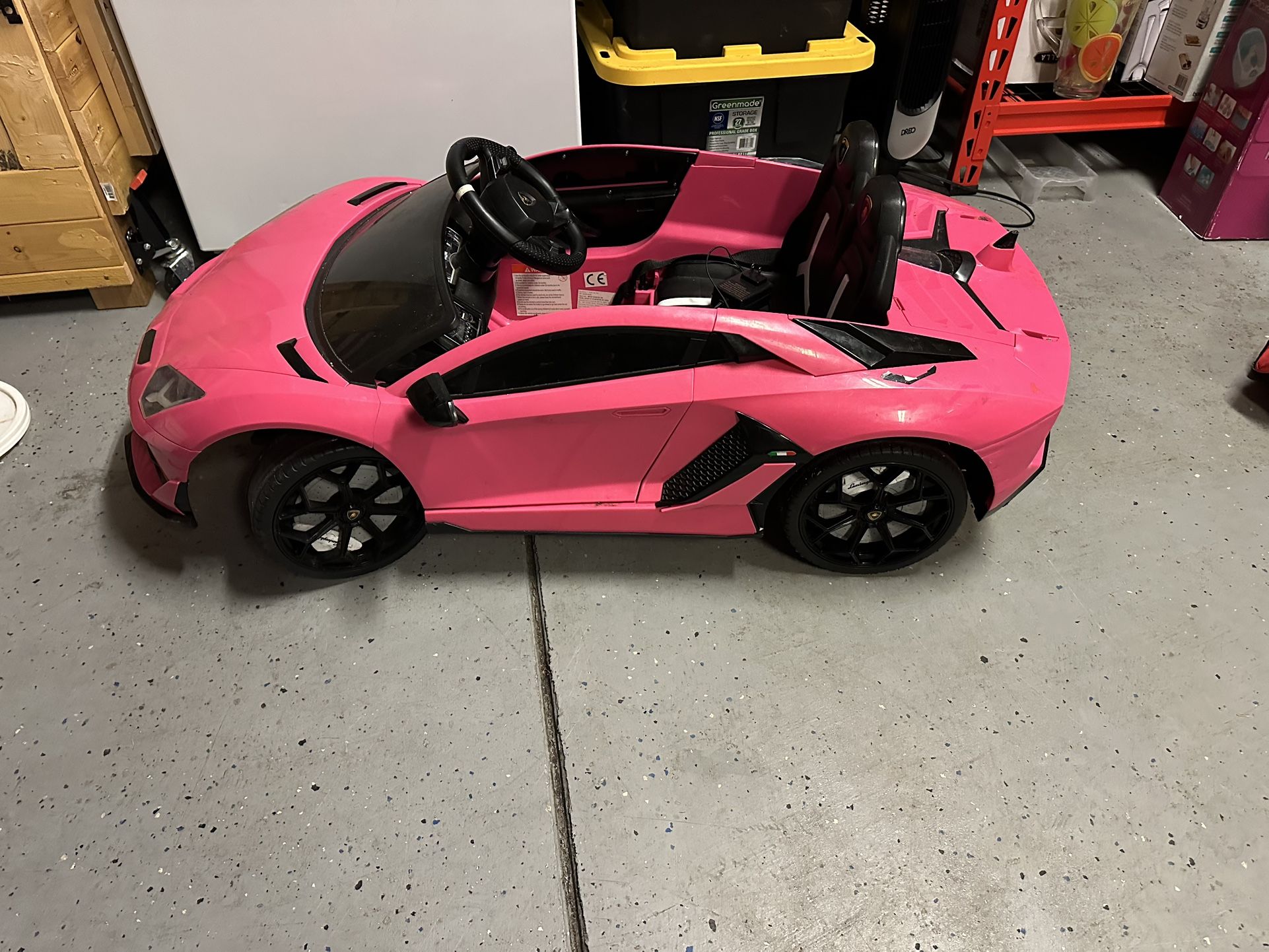 Bought on Amazon a couple years ago, works well and no issues. These range between 200-300 after tax. Asking 150 cash only and pick up in puyallup. Description below from Amazon listing. π DOUBLE MODES: Parental remote control & Kidβs Manual operate. Parent can help to control this car with remote control(3 speeds shifting) if kid is too young. Kid can operate this car by himself/herself by foot pedal and steering wheel(2 speeds shifting). π MUTIPLE FUNCTIONS: Built-in music & story, AUX cord, TF port and USB port to play your own music. Built-in horn, LED lights, forward/backward, turn right/left, brake freely; Speed shifting and real car engine sound. π LICENSEND LAMBORGHINI:Conforms to ASTM F963 standards. Realistic lockable scissor doors wing up like a butterfly. Portable handle for easy move when battery runs out. Little storage room for keeping kidβs snacks or toys, etc. π 4 WHEELS W/SUSPENSION: Spring suspension system for a comfortable and safe ride for you kids, ideal for both outdoor & indoor playing. Slow start device prevent your kids being shocked by sudden acceleration or deceleration. π SPECIFICATIONS: Overall size 48.4β*26β*17.7β (L x W x H); Maximum Load 55lbs. Speed: 2-5 KM/h. Suitable for 3-6 years old kids.