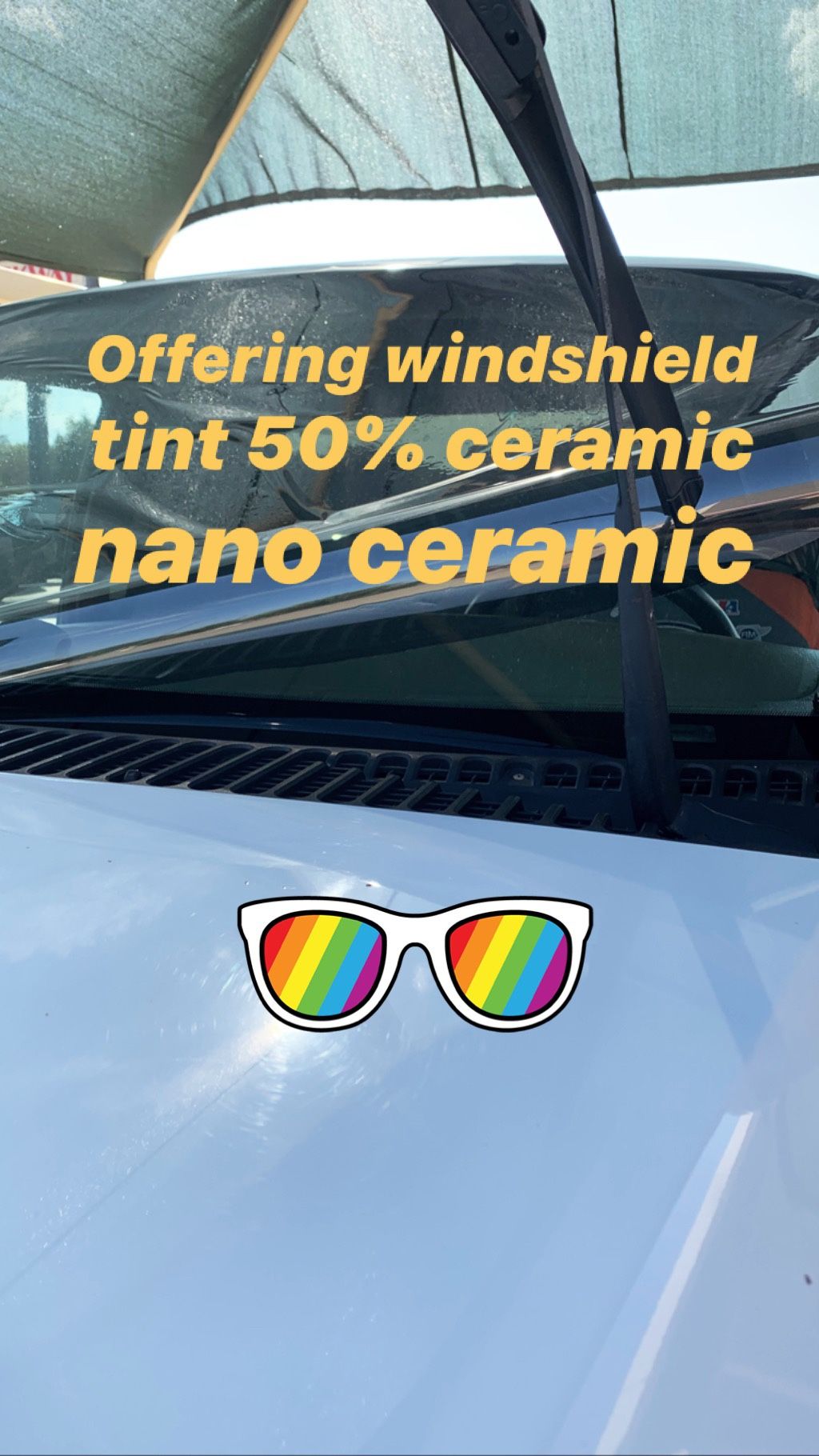 50% and 70% Nano ceramic front windshield tint film Protect your dash from ultraviolet rays and the Sun Keep your car or truck cooler with front windshield tint $40 dollars for the windshield in 50% or 70% nano ceramic windshield tint film Thanks for checking.