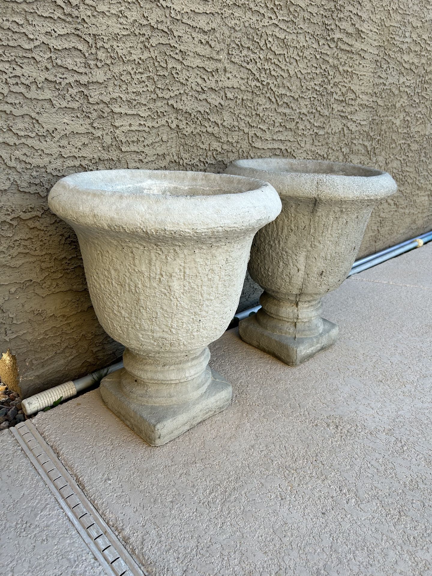 PAIR CONCRETE PLANTERS. SOLID GREAT CEMENT GARDEN POTS. HAS DRAINAGE . (H-20Inches W~16 Inches ) $85.oo PAIR SILVERADO RANCH & LAS VEGAS BLVD…………………….
