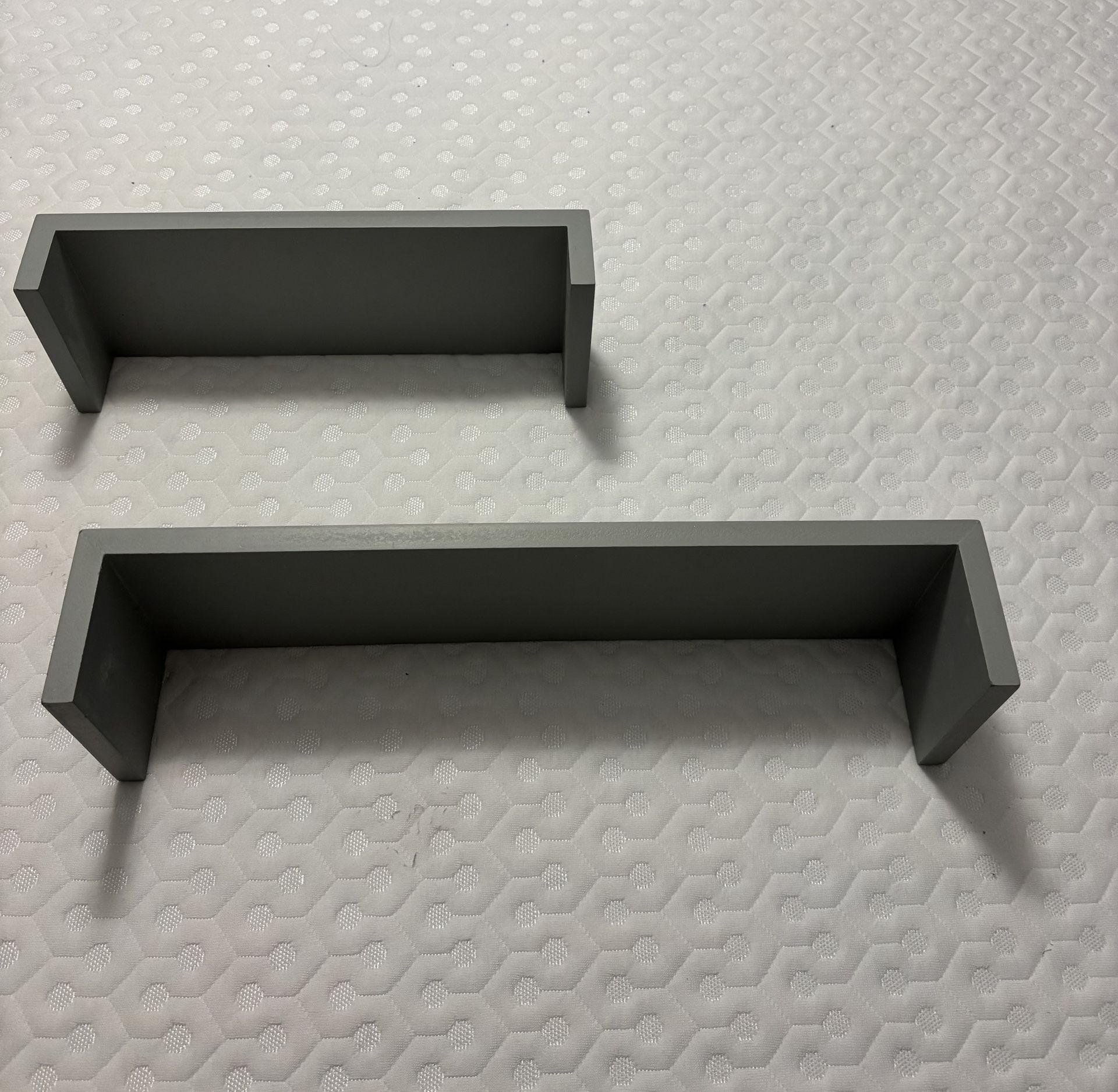 2 Small Wall Shelves. One is 11 inches, and the other is 15 inches. Wood with gray paint. Excellent condition.