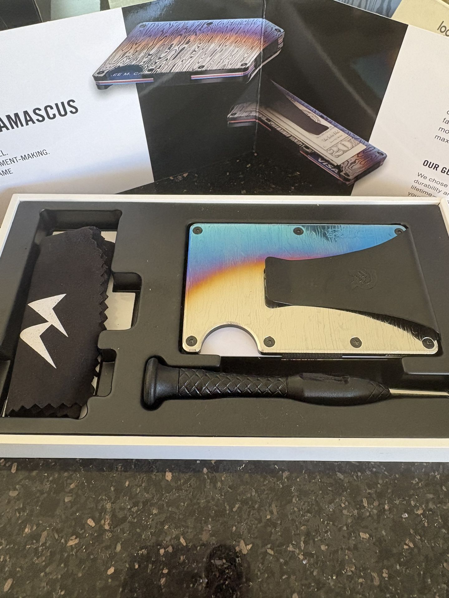 The Ridge Burnt Damascus- Bundle (strap & Money Clip) Wallet New