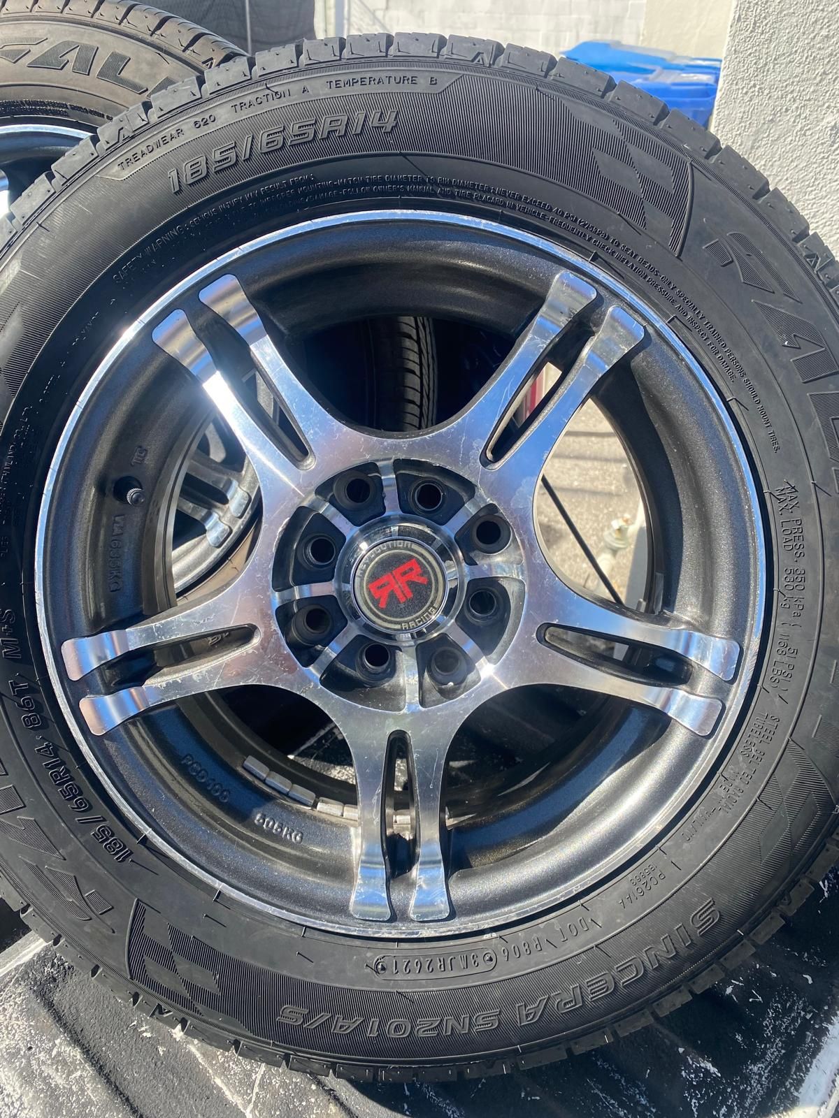 Selling 4 wheels and tires Size 185-65 R14 Bolt pattern 4-100 and 4-1/2 Fits Honda civic- accord