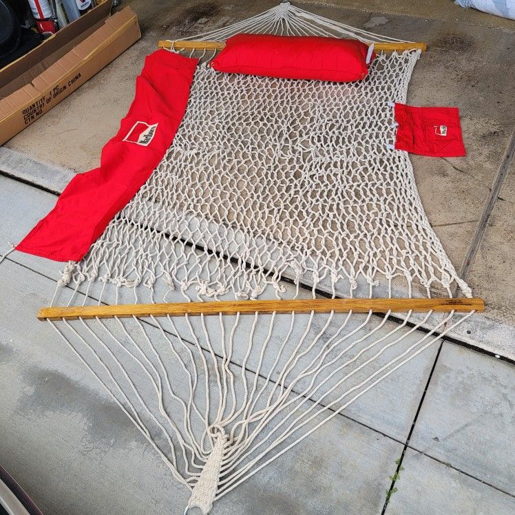 Never used vintage hammock. Has carrying case, pillow and side pocket. Pick up in moreno valley near the 60 and nason.