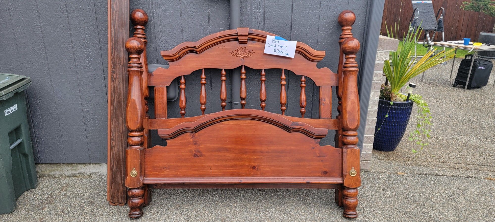 Bought this beautiful set in 1989. Solid cherry wood with metal side rails. Can deliver locally for $25. Selling forv$400 or OBO