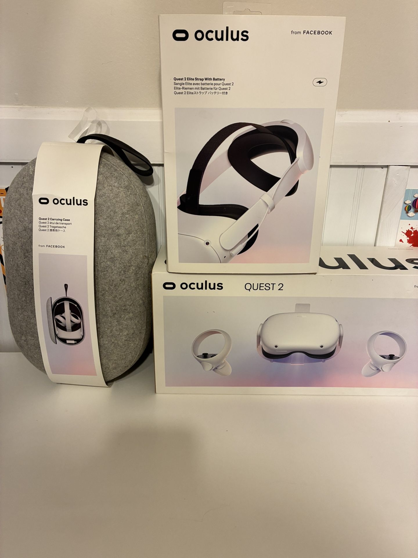 This Oculus is very lightly used and comes in original box with the elite strap and battery and a carrying case that were purchased all together from Best Buy. Open to trading for a Nintendo Switch or any sealed trading card boxes just shoot me what you got.