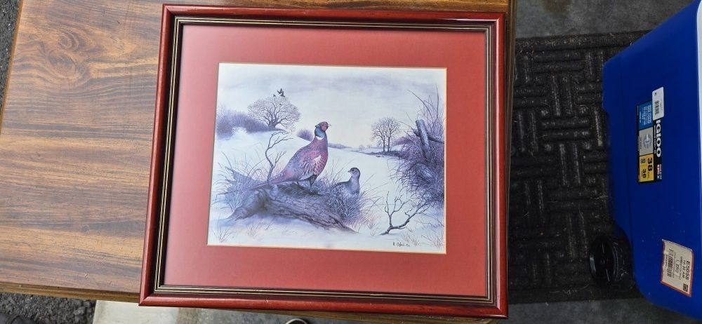 Limited edition (1157:1624) Anthony Oxford framed print of hunting quail. Color coordinated wood frame and mat. Frame size: 14" x 16"