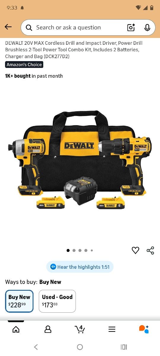 DEWALT 20V MAX Cordless Drill and Impact Driver, Power Drill Brushless 2-Tool Power Tool Combo Kit, Includes 2 Batteries, Charger and Bag (DCK277D2)