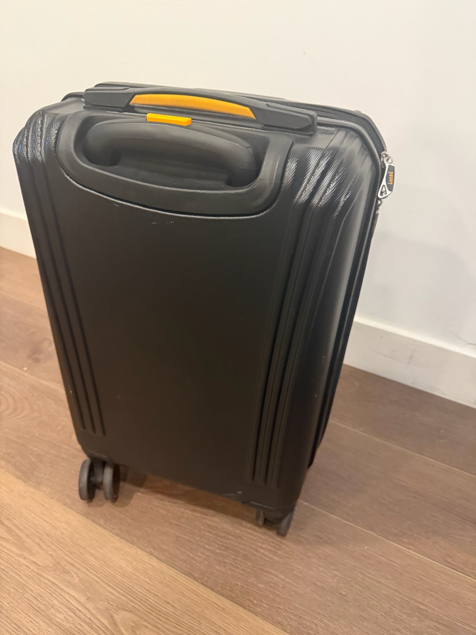 Black, Hard shell exterior. In perfect condition with no dents or cracks. Wheels are perfectly intact and no rips or tears in the interior. Has zipper compartments and dividers. Contact for more info.