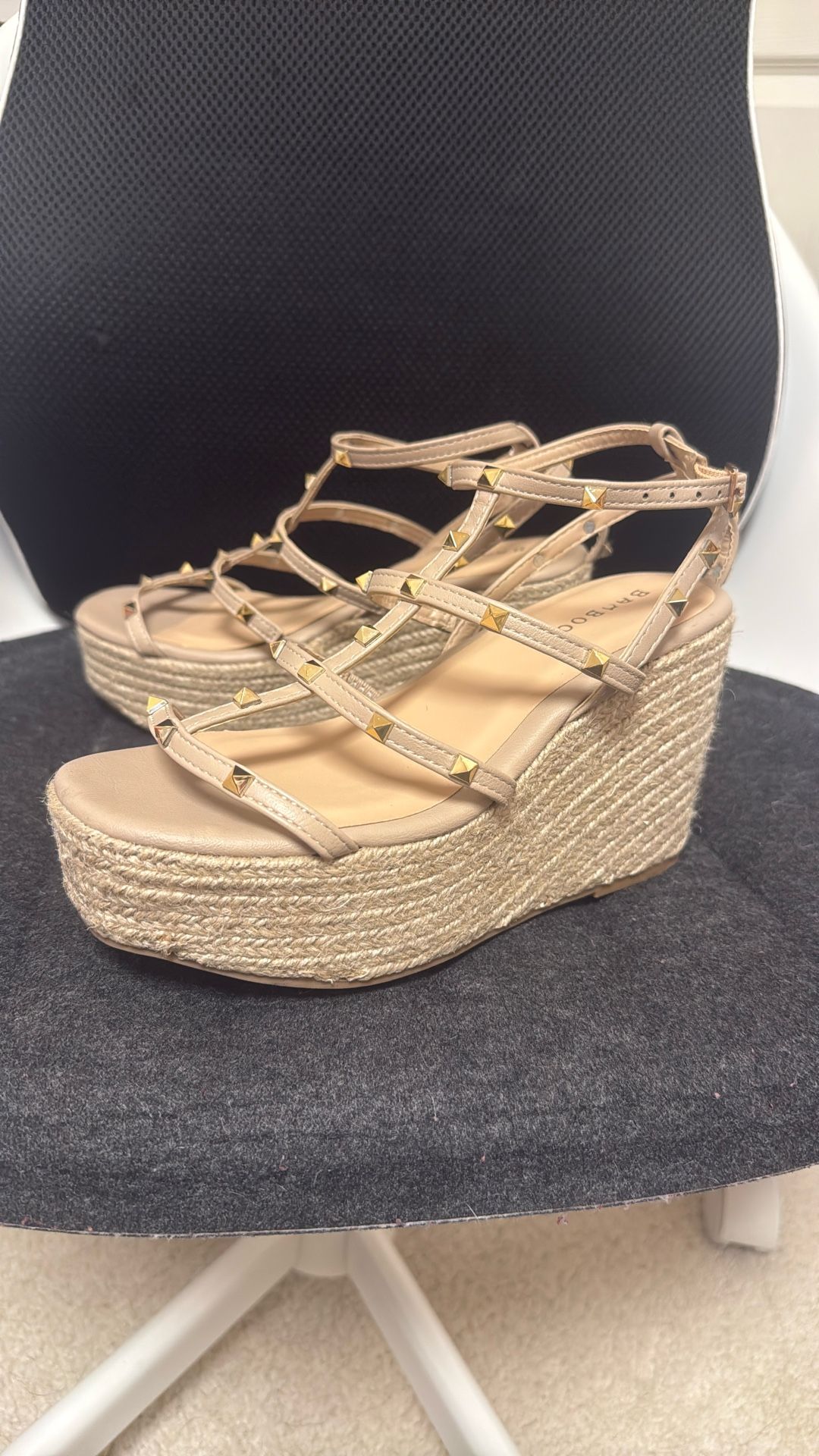 Fashion Nova Gold-Studded Straps Wedges in size 6 BRAND NEW!