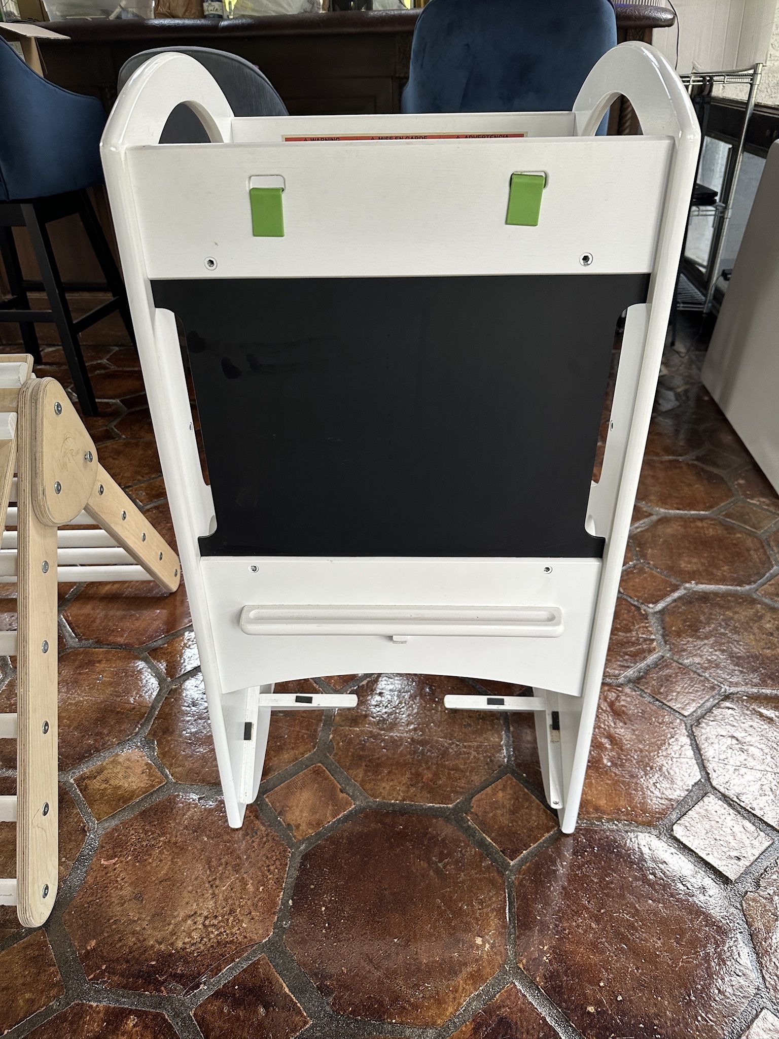*Little partners original learning tower (adjustable, solid, wood kitchen, helper) * Wooden Pikler triangle climbing set with reversible ramp/slide * Little partners wooden maze activity board (fine motor skills) All pieces are solid wood, very sturdy, and in great condition. Clean and from a smoke free home. Retail value over $450 combined. Selling as a bundle.